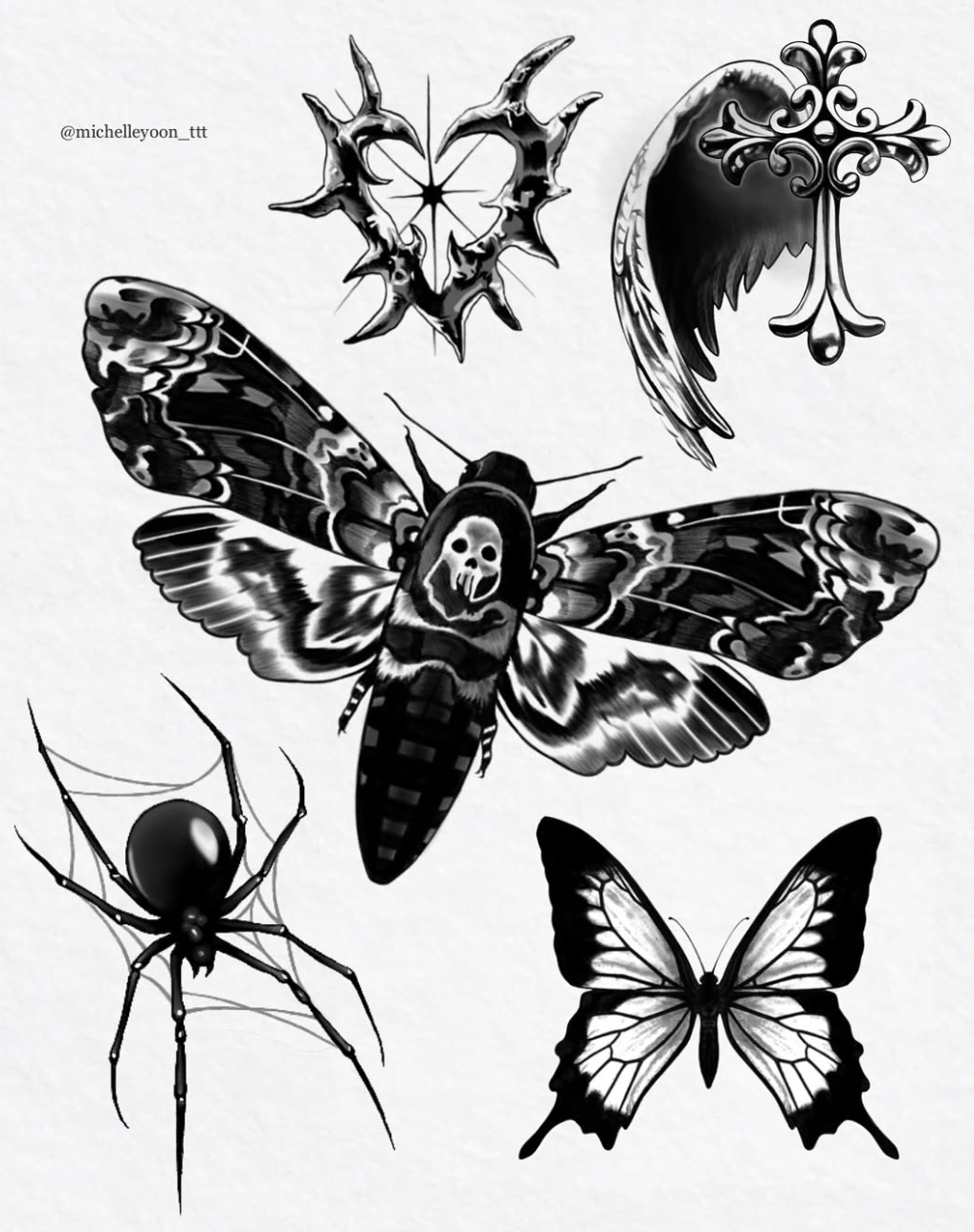 I’m Michelle, a tattoo artist from South Korea. I enjoy working with dark themes. I find inspiration in those subtle moments where fear and love intertwine. My work focuses on black and grey, visually expressing dark and surreal imagery, using thing lines.